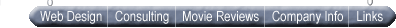 So, if you need web design, click Web Design. If you need any other services, click Consulting. To learn more about the company (including where the name came from, because I'm sure you're wondering), click on Company Info. For a small list of helpful and interesting links, click on, uh, Links. But if you want to kill a little time (and maybe laugh a bit), go to the Movie Reviews.